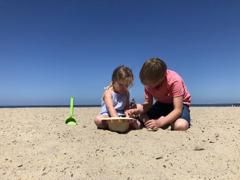 En wat een mooi strand! Heerlijk rustig, en heel diep. Natuurlijk moesten er meteen schelpjes gezocht worden en even snel natte voeten halen.